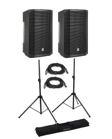 12-inch 2-way Battery-powered PA Speakers with Stands and Cables