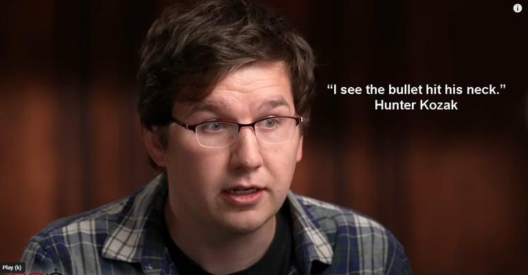 Third, why did Hunter Kozak and another witness appear on CBS 60 MINUTES and flat out lie about seeing the bullet hit his neck?????